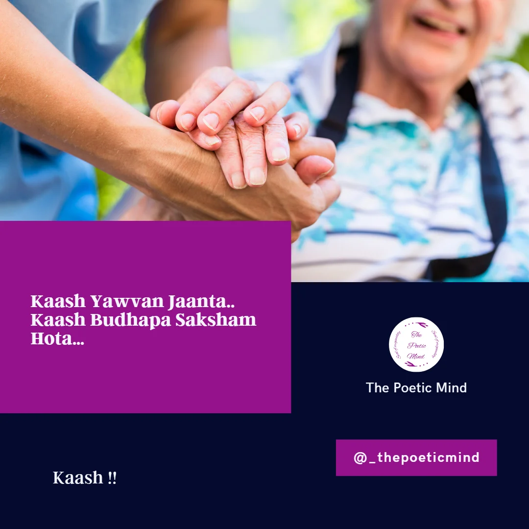 “Kaash yawvan janta.. kaash budhapa saksham hota..” khayal aaya hoga na dimag mein ki kya hai ye?.. kis tarah ka topic hai.. kuch ne padhna hi utsukta se chalu kiya hoga… Ek zamana hota hai.. jahan dimag mein kayi sapne hote hain.. kuch waqt guzarte apne hote hain.. aur kuch ko bebas hokar bhulna padta hai.. magar yahi to zindagi hai.. har pal kuch utar chadhav liye.. akhir chalna to padta hai!……
