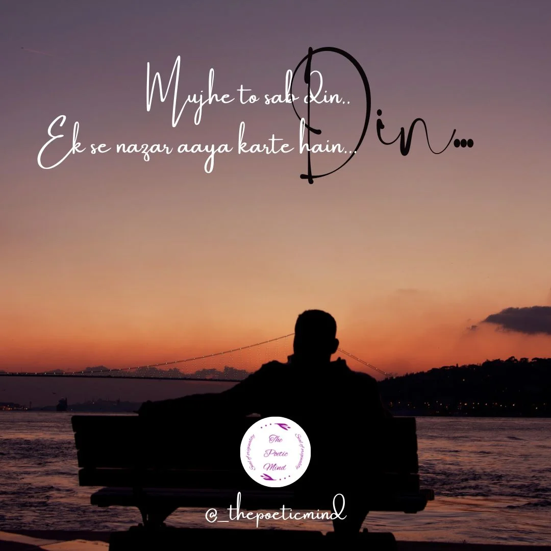 Kayi din nikal jate hain… Bas ek intezaar sa bana rehta hai… Kayi raatein nikal jaati hain… Lekin ek khwaab.. sirf jaga rehta hai… Kehne ko to duniya rukti nahin… Par kuch thama sa lagta hai… Sirf kuch yaadon ke sath jeena…….
