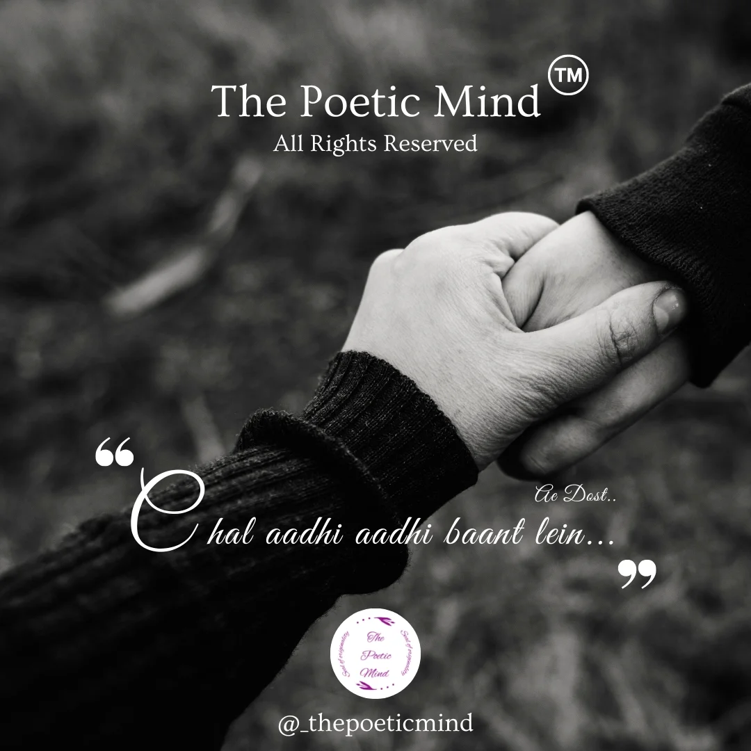 Ishq mohabbat to bohot likh liya… Chal dost.. ek shaam tere naam karte hain… Kuch gam mere hisse hain… Kuch seena tera dukhta hoga… Chal milkar inhein sudhaar lein…….